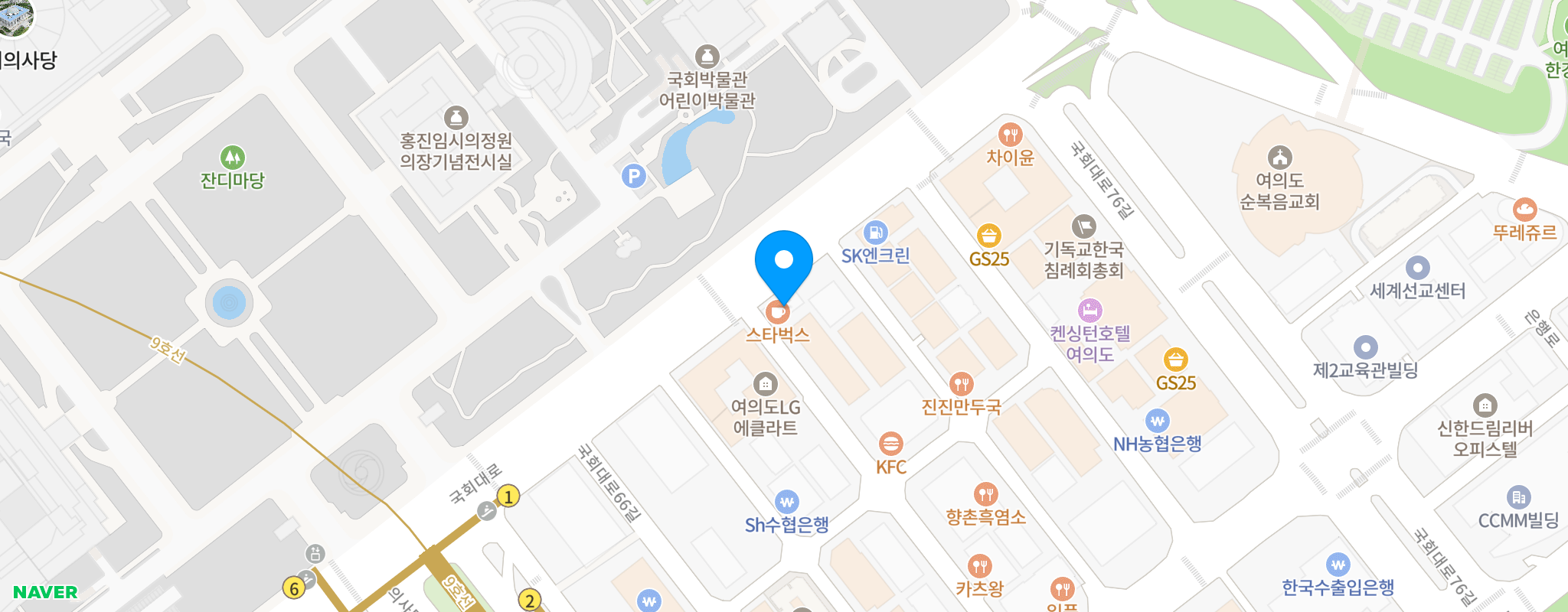 - 국회의사당역 1번 출구에서 도보 200m